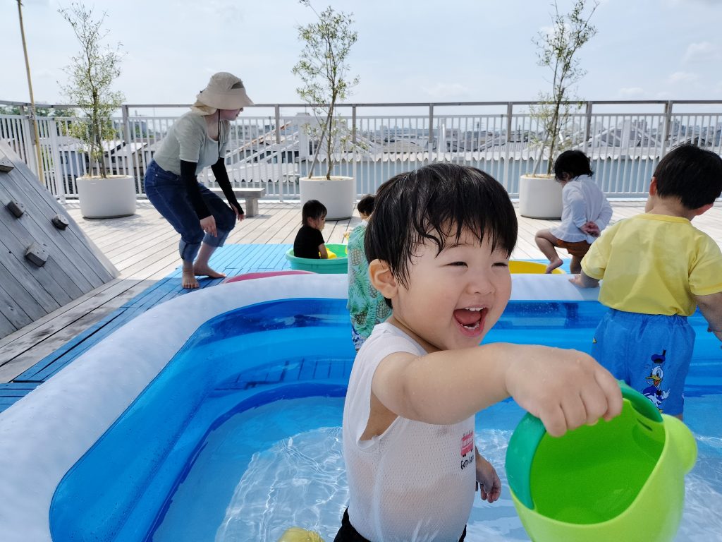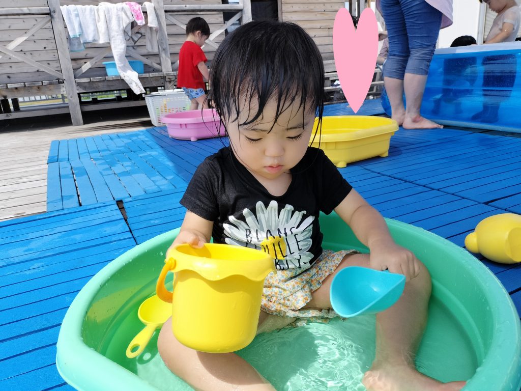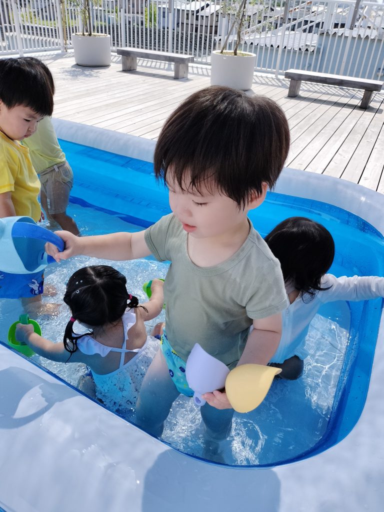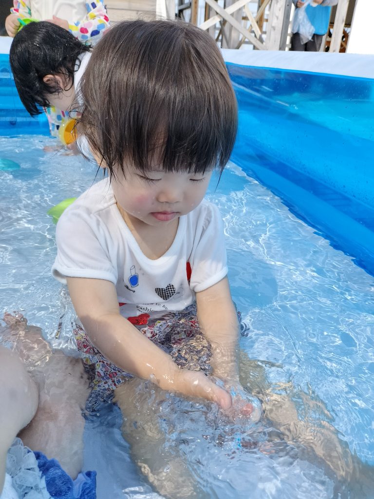 こちらのお友だちはプールに浸かって!バシャバシャと全身でお水の