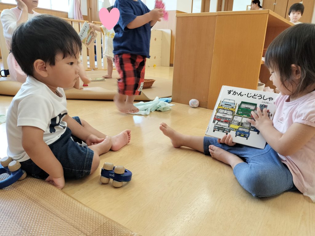 保育者が絵本を見せるように絵本を持っている姿がとっても可愛らしいですね!😍