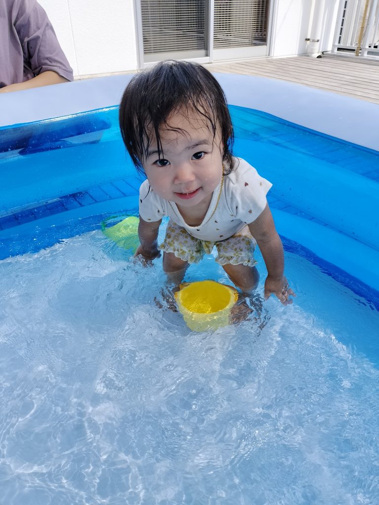 楽しいプールにニッコリ笑顔!気持ちいいね!