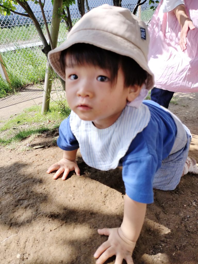 こちらのお友だちはハイハイで築山登りに挑戦!