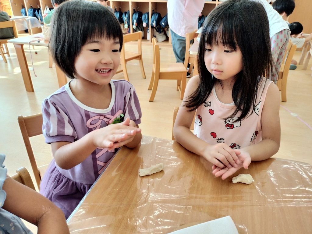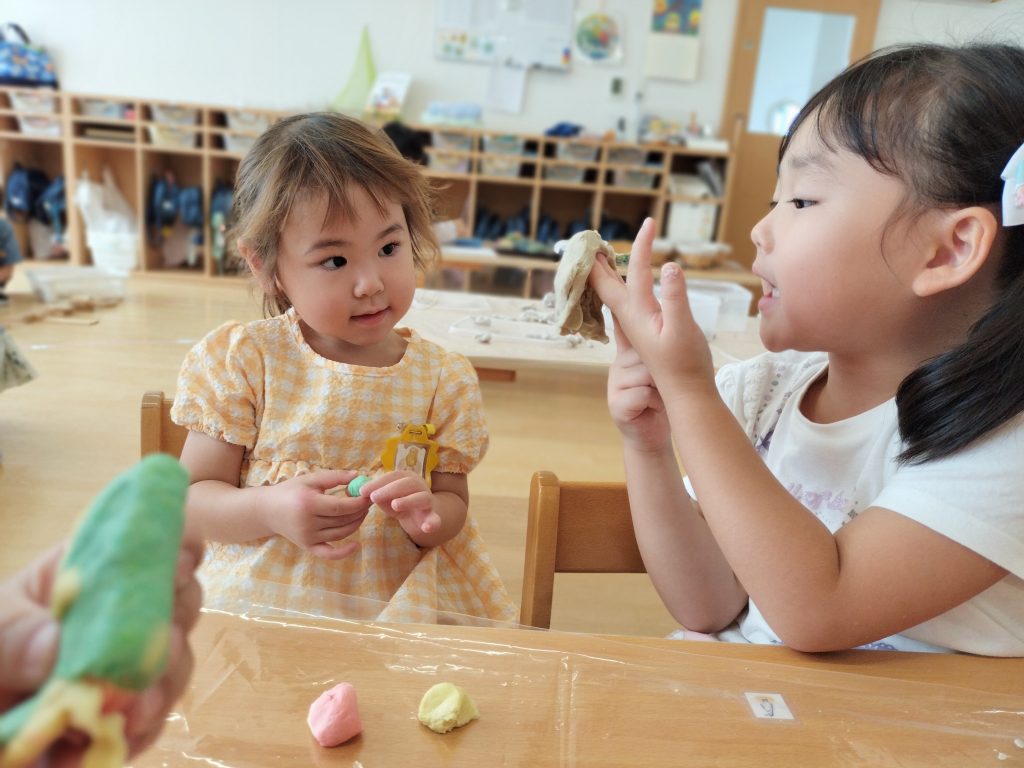 「柔らかいね~」と粘土の感触を楽しんだり…