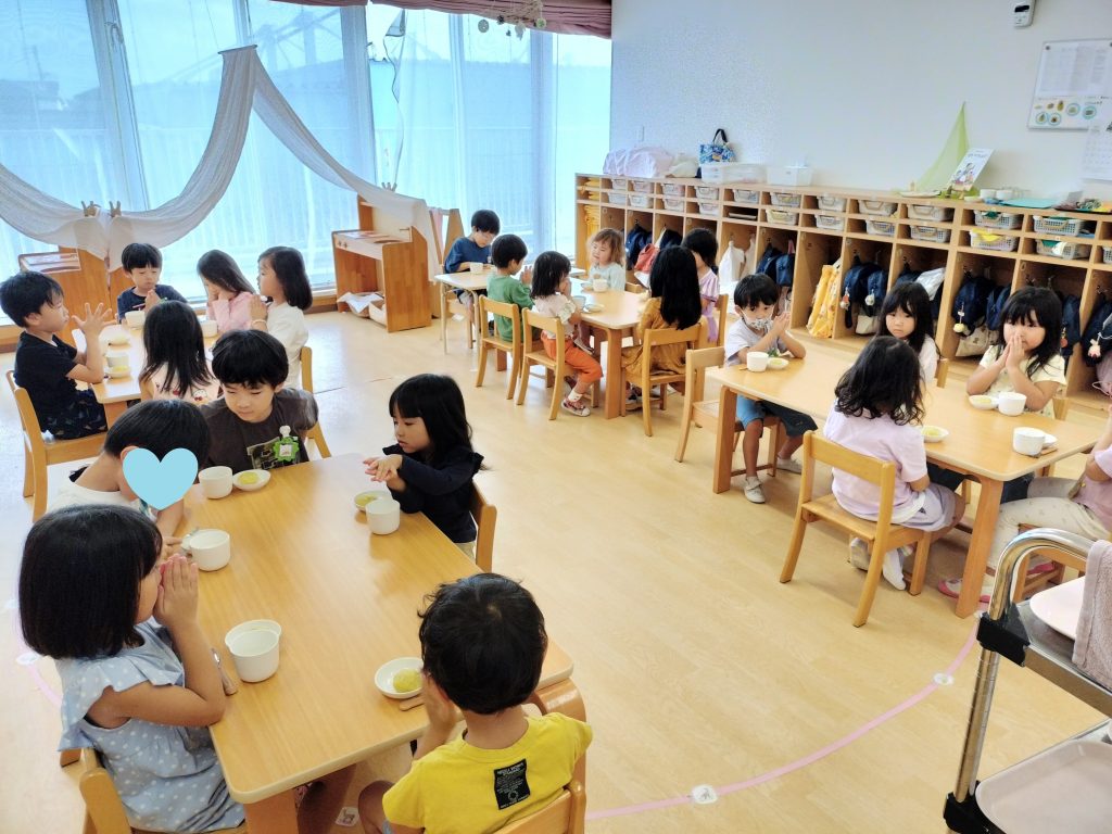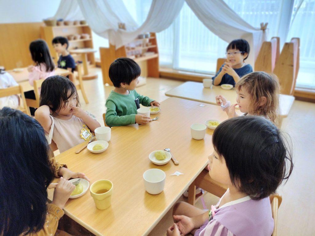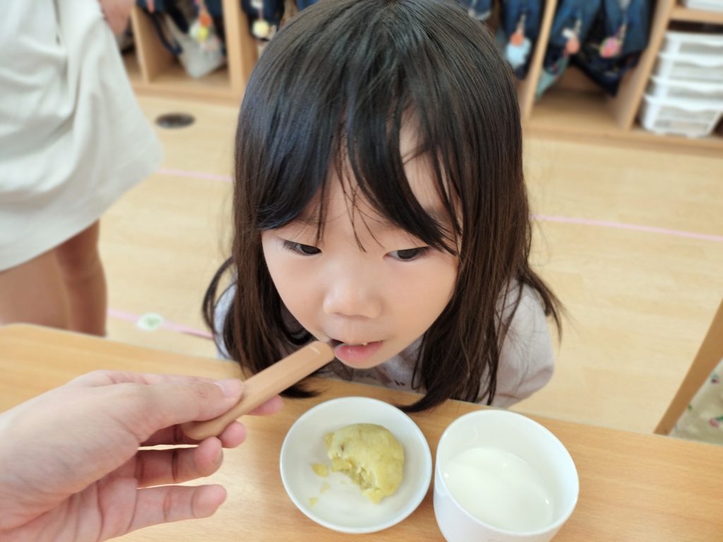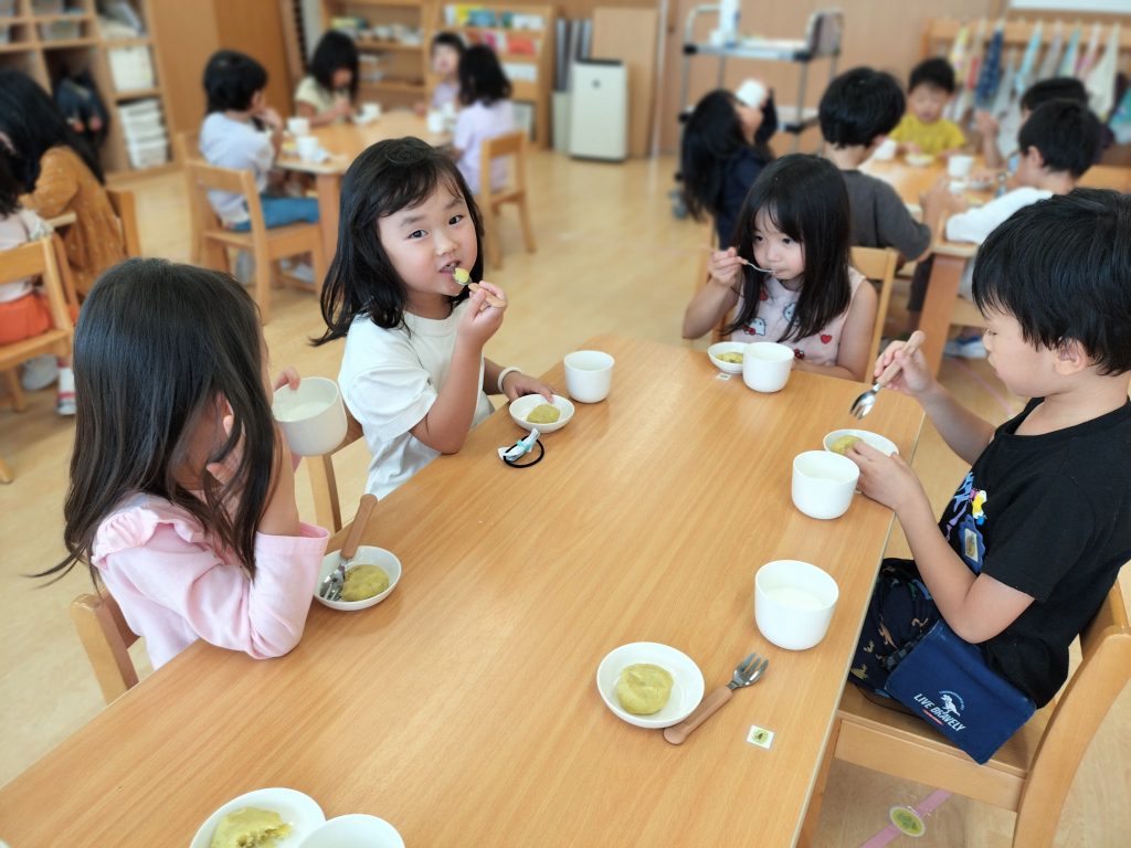 黄色い真ん丸の芋団子を見て「おつきさまみたいだね!」と喜んでいました!