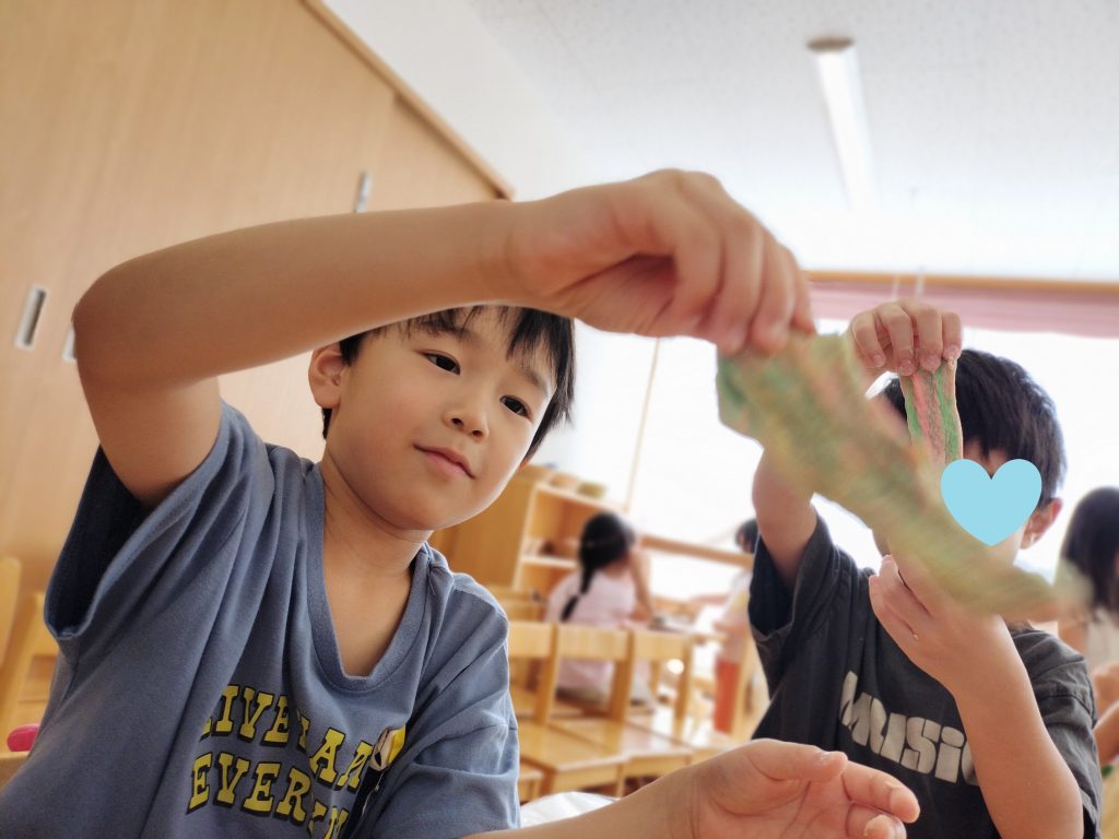 「みて、のび~る!」三色が混ざり合っていくのも面白い!