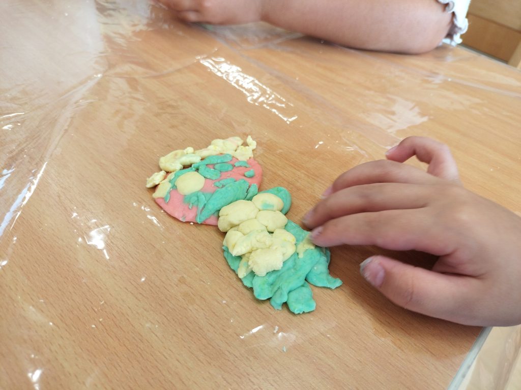 いつも使っている粘土とは感触が違って、柔らかさに夢中になっていました。