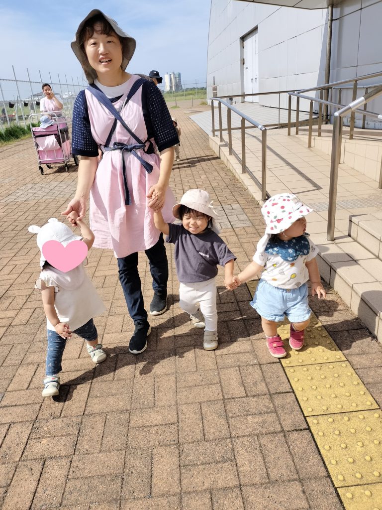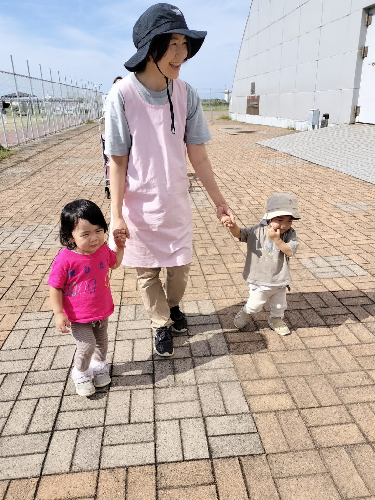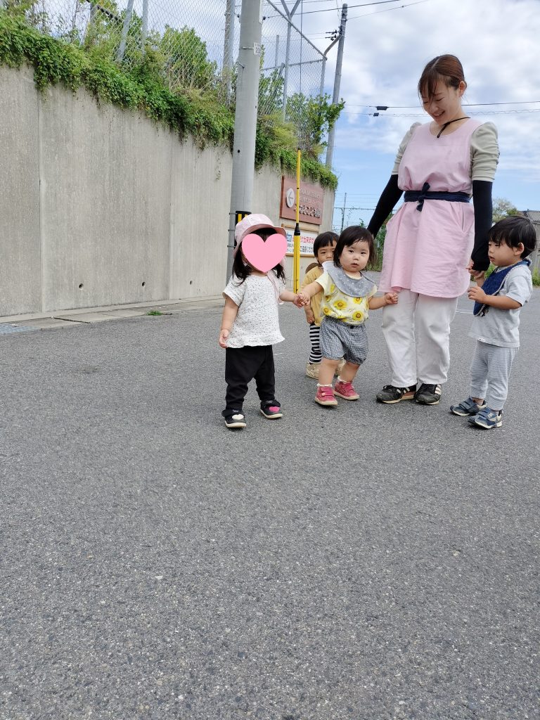 保育者とおててを繋いで、長い距離を歩けるようになってきましたよ。