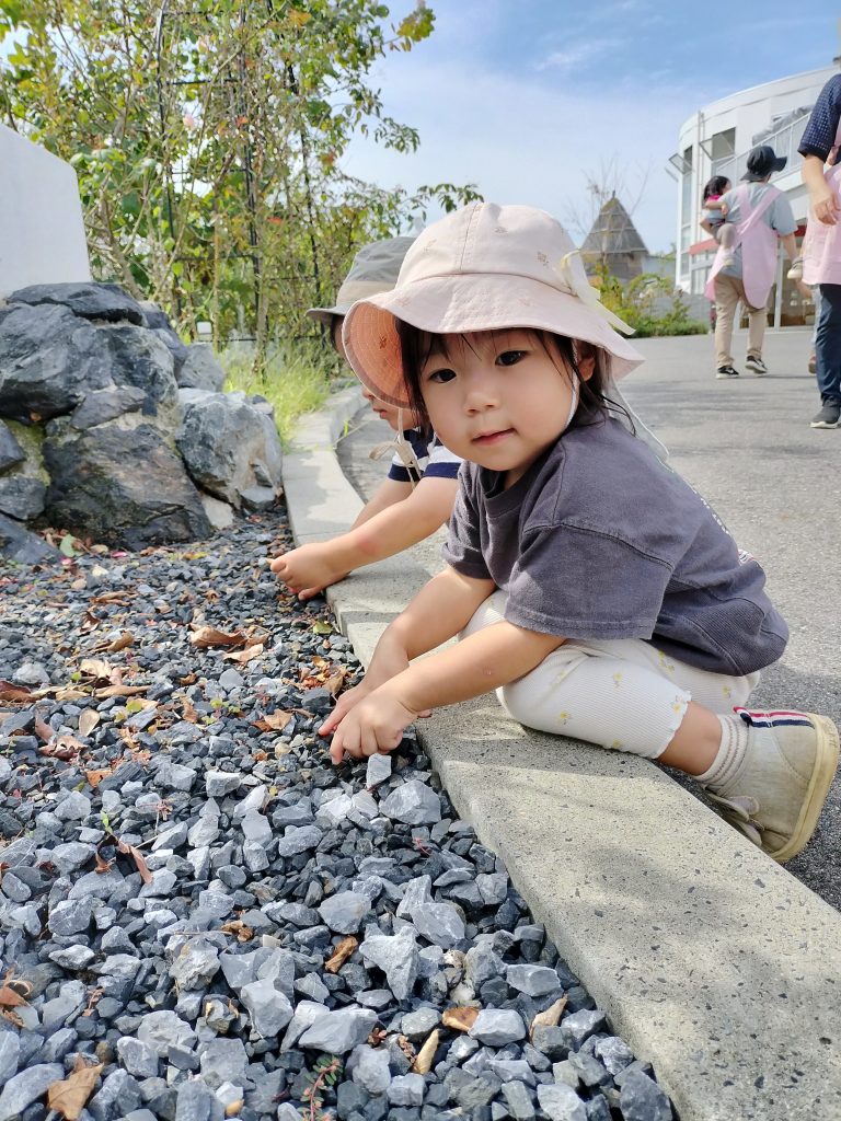 みなとこども園の駐車場の小石を見つけて嬉しそう♪