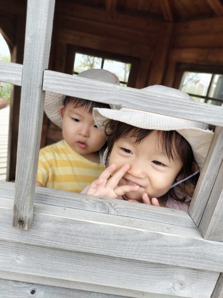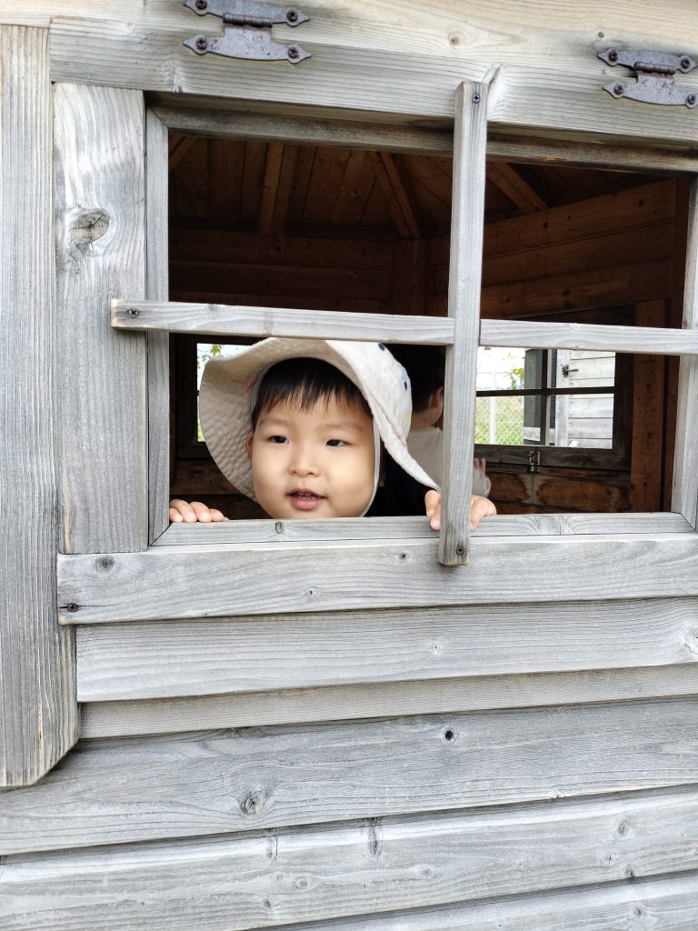 窓から「ばあ!!」とお顔が出すのが楽しいようです😆