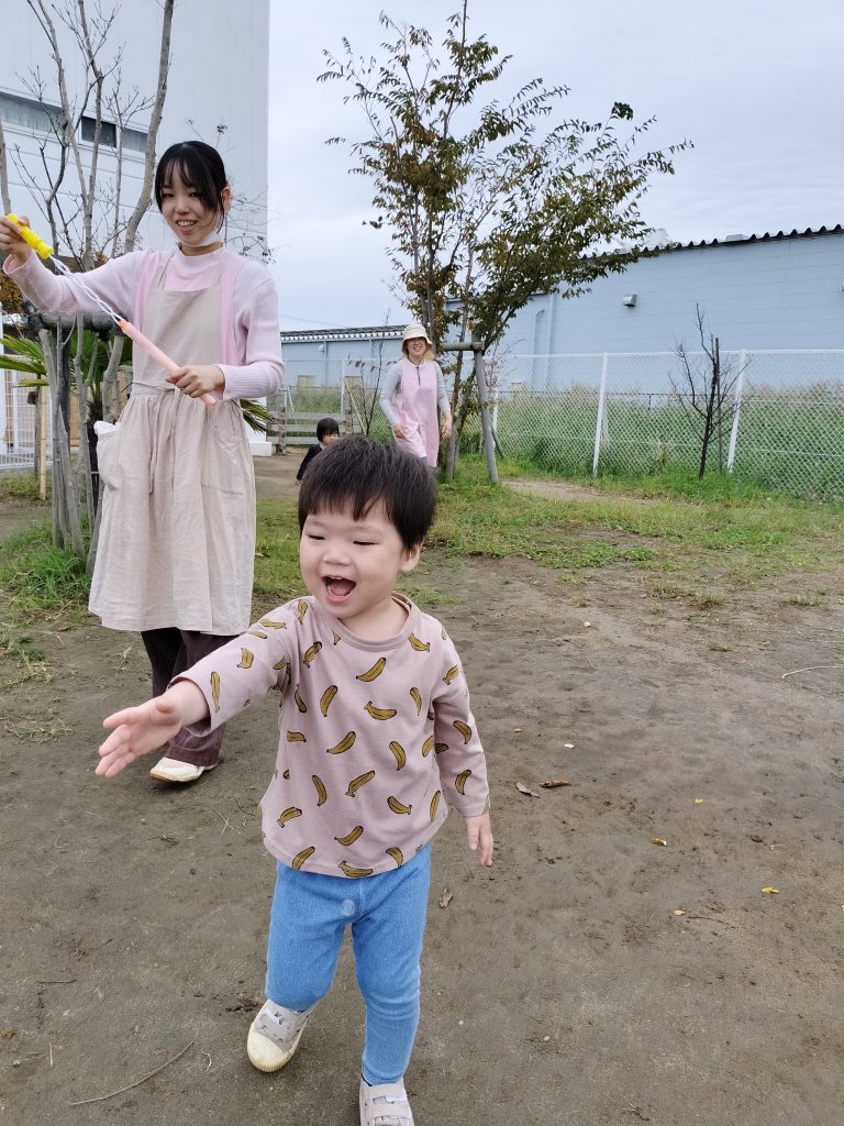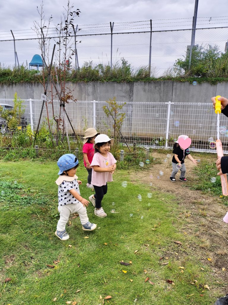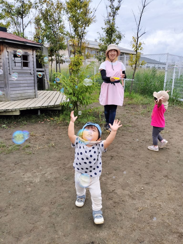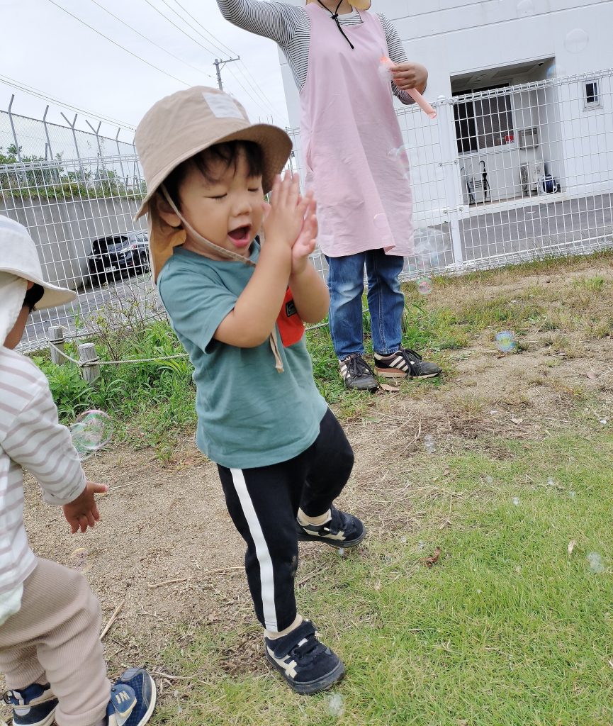 しゃぼん玉を手でパチン!と、上手につかまえるお友だちもいますよ🥰