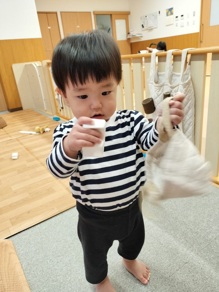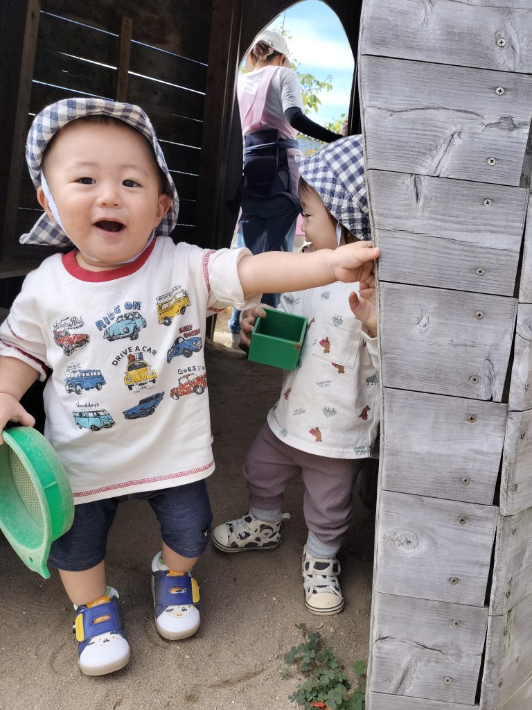 木のお家に入って“いないいないばぁ”をしているお友だちもいましたよ🤭