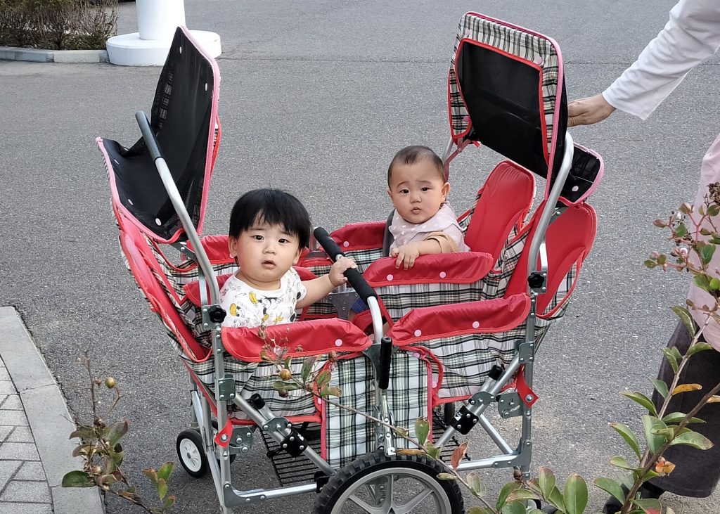 保育者が歌をうたうと、手をつないで嬉しそうに身体を揺らしています🤭