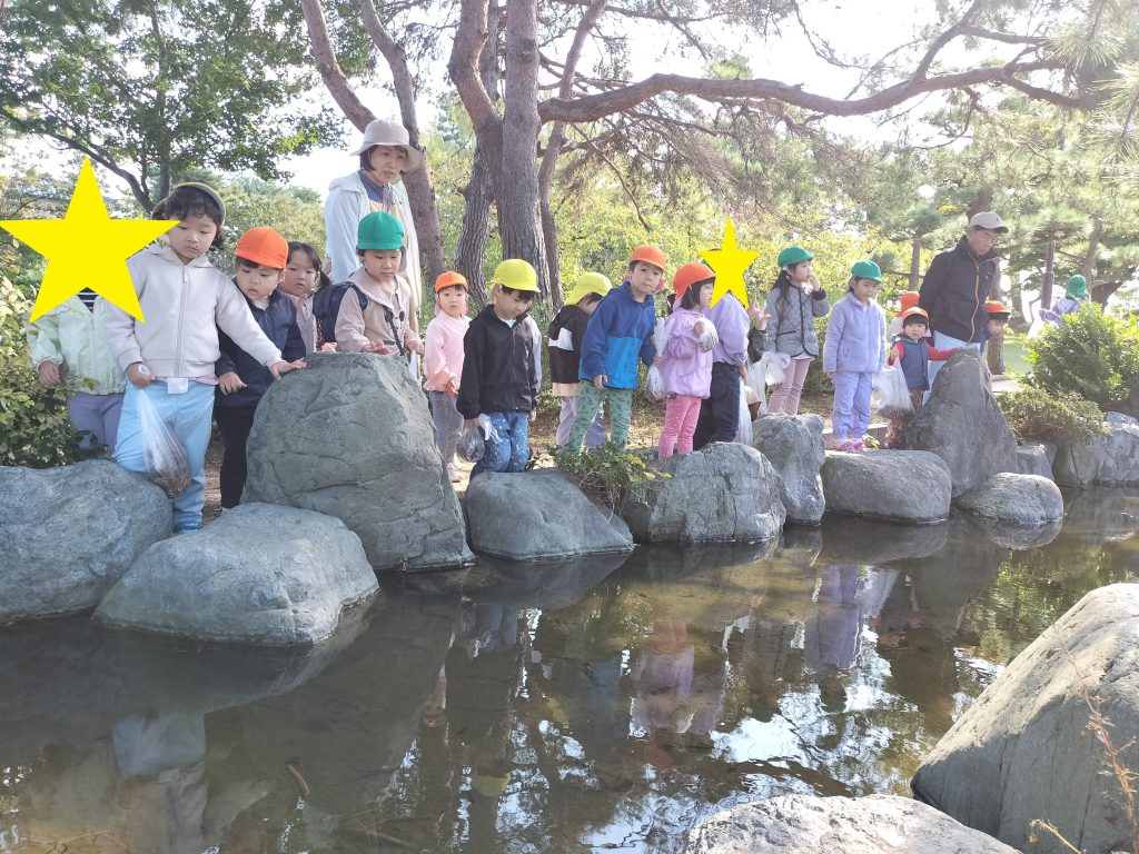 池の中にお魚が泳いでいないか探したりしました🐟