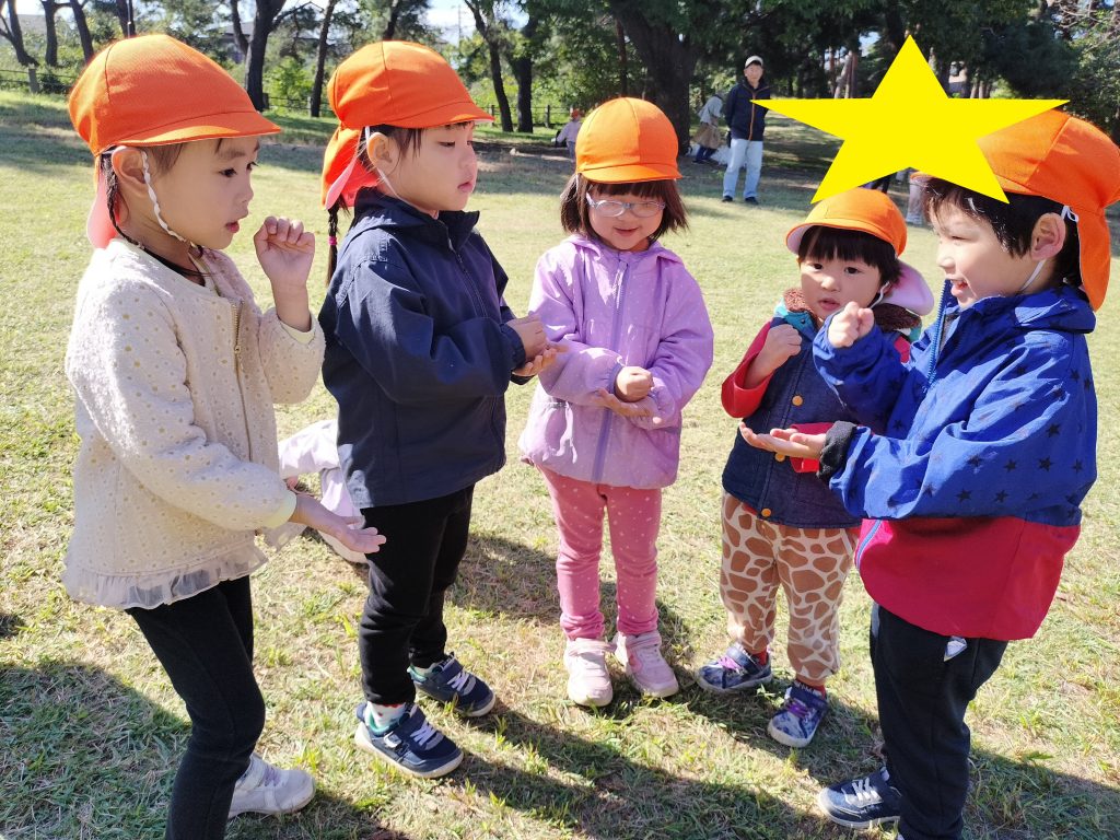 「最初はグー、じゃんけんぽん!」とみんなでじゃんけんをして鬼を決めている様子です!