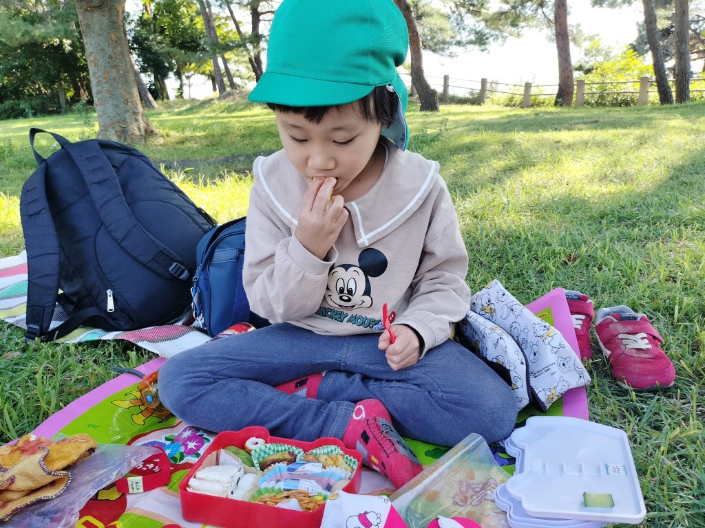 行きのバスに乗っているときから「お腹すいた!お弁当食べたい!」と楽しみにしていたお昼の時間です♪