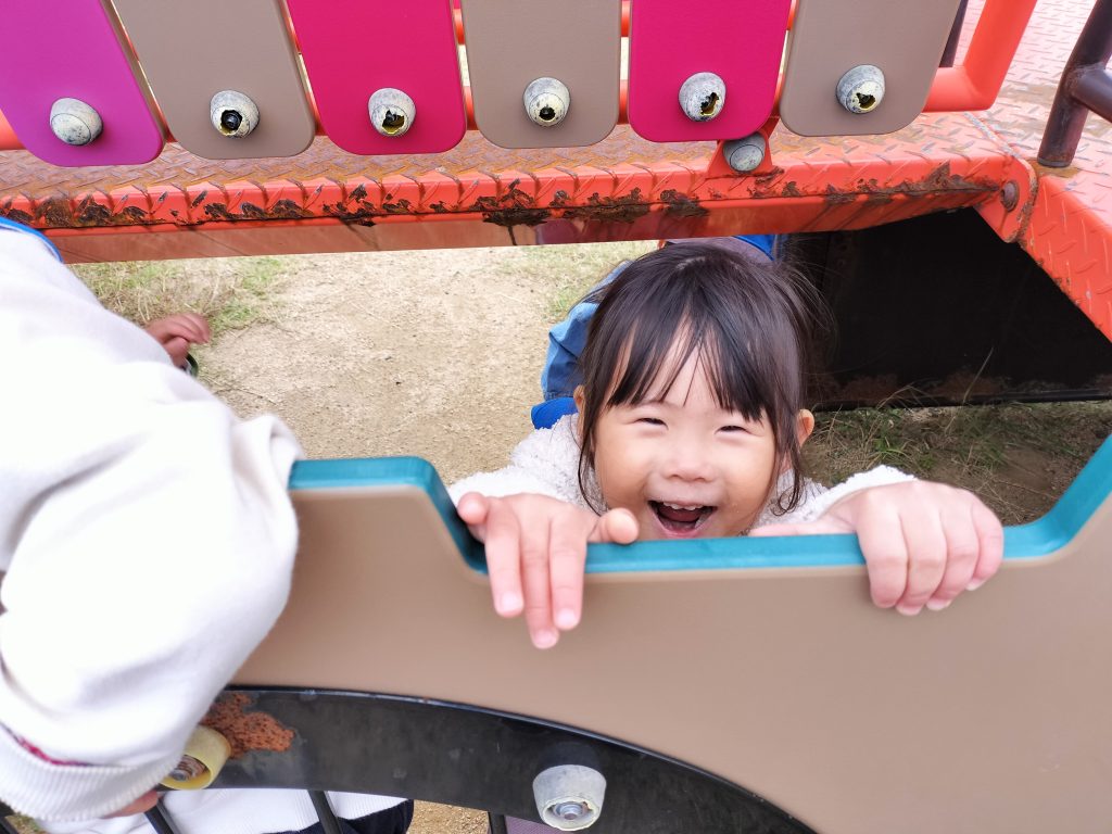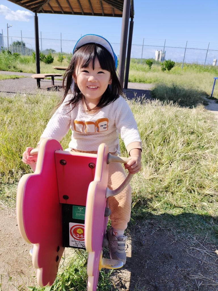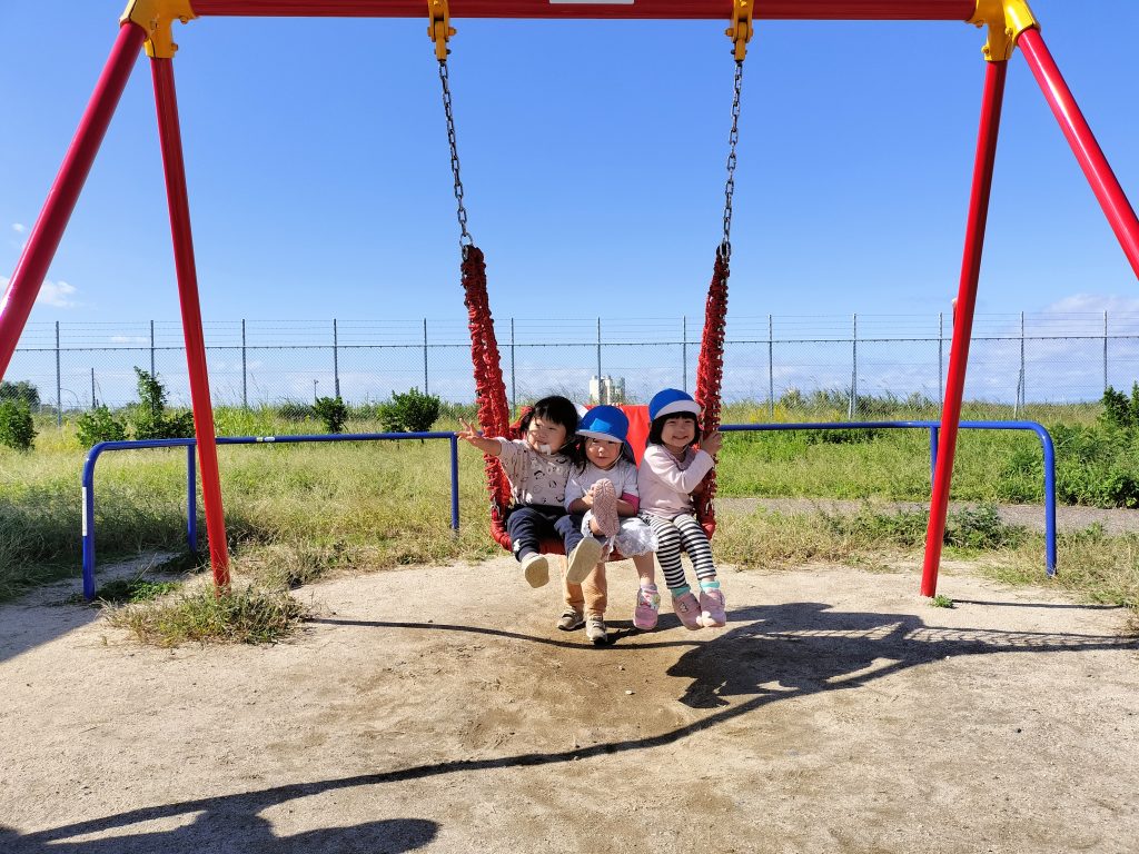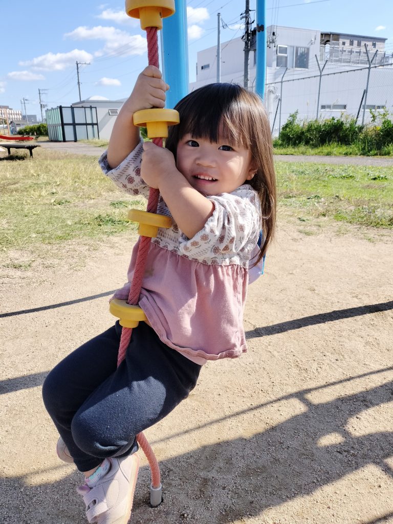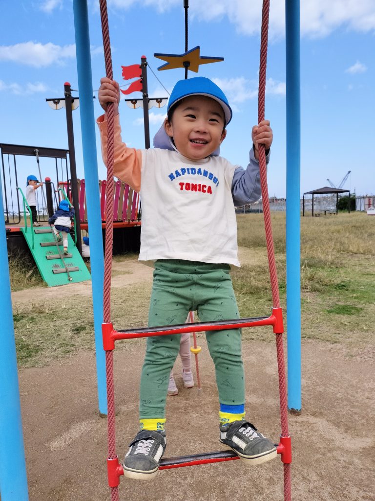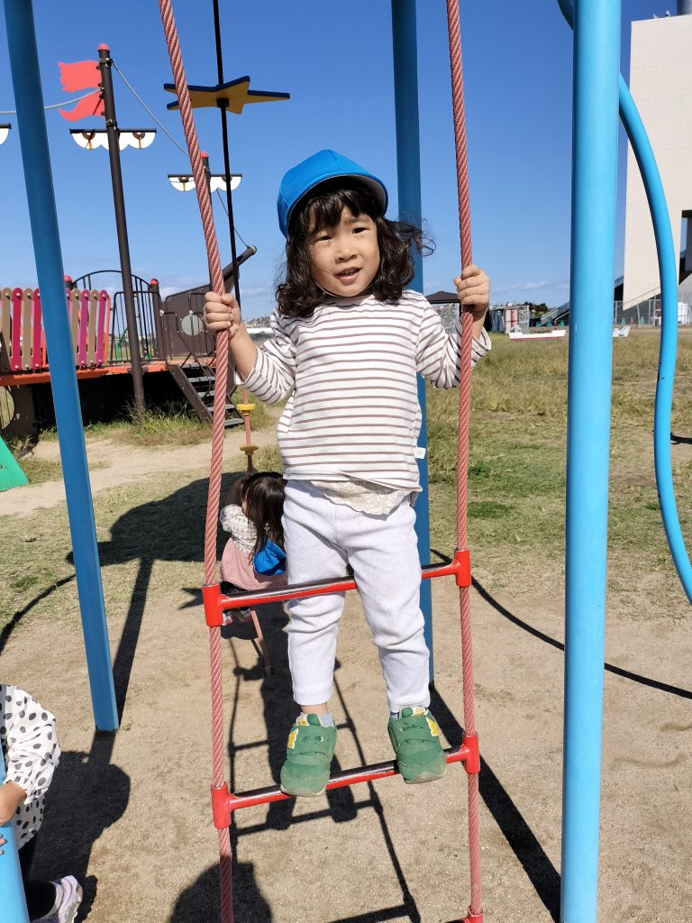 スウィング遊具では、器用に身体を動かして揺れていましたよ。