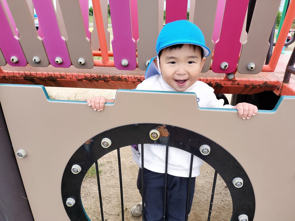 「せんせい 見てて~! ばあ~😁」と言って顔を覗かせていますよ!