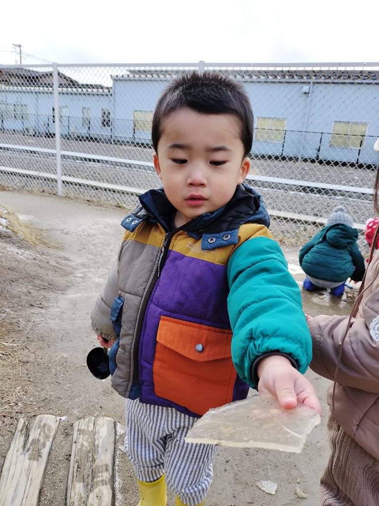 「つめた~い」と言いながらも嬉しそうに触っているお友達!