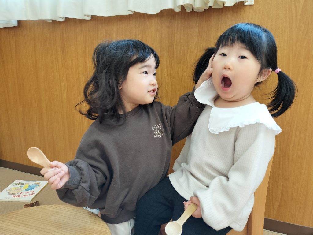 お医者さん役のお友だちも、スプーンを医療器具に見立てて 診察中です👩‍⚕️