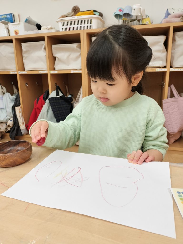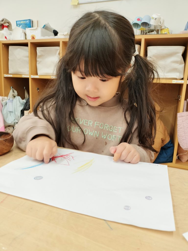 『わ~』と驚いた表情でお絵描きしているお友だちや・・。