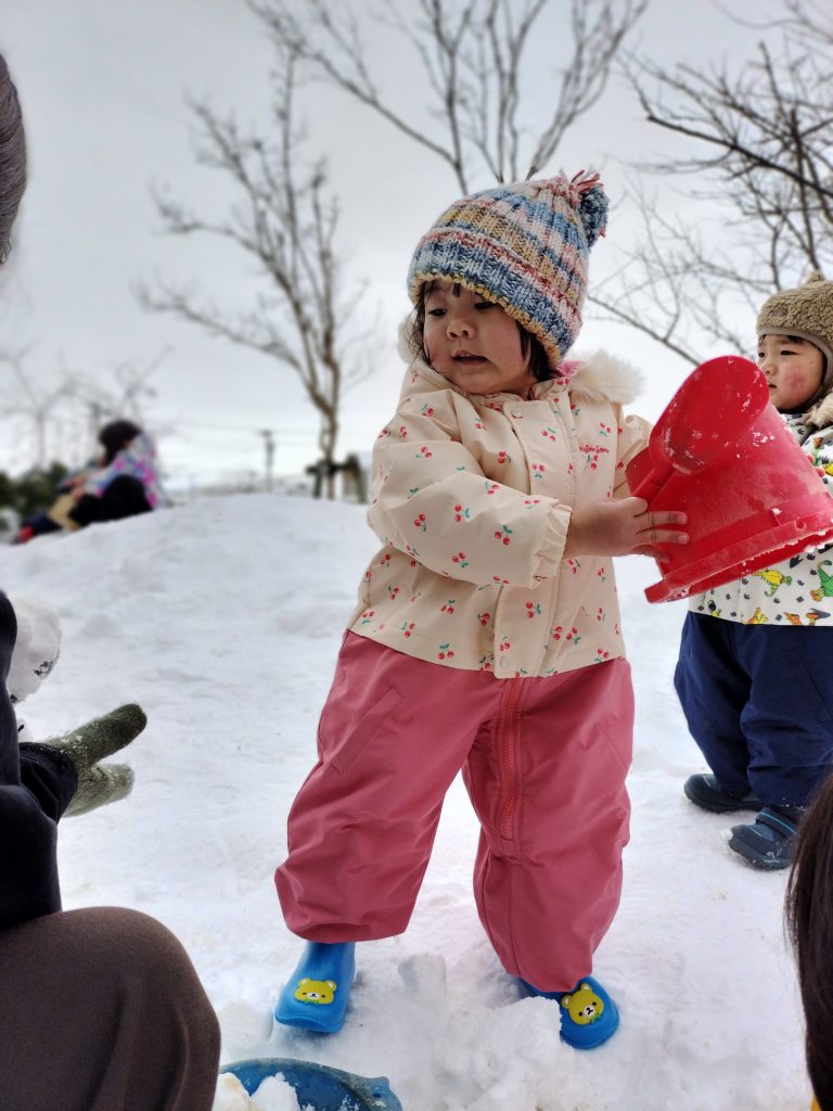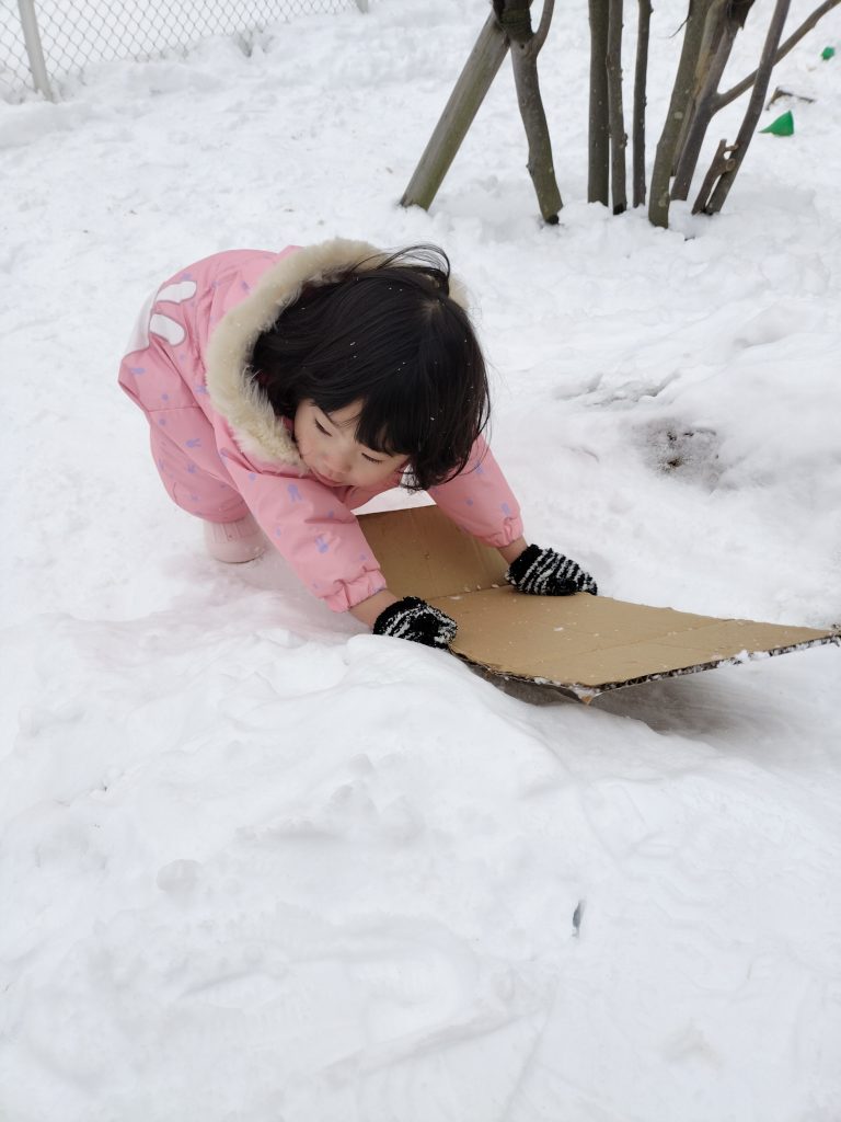 ここからは園庭での雪遊びの様子です!