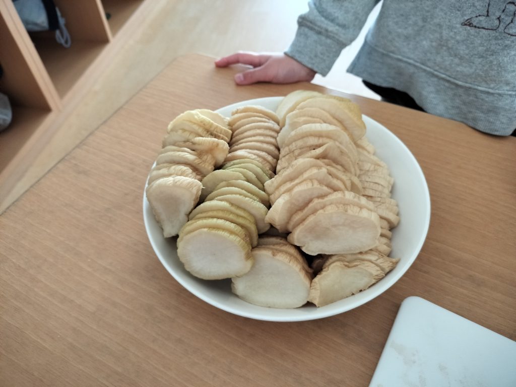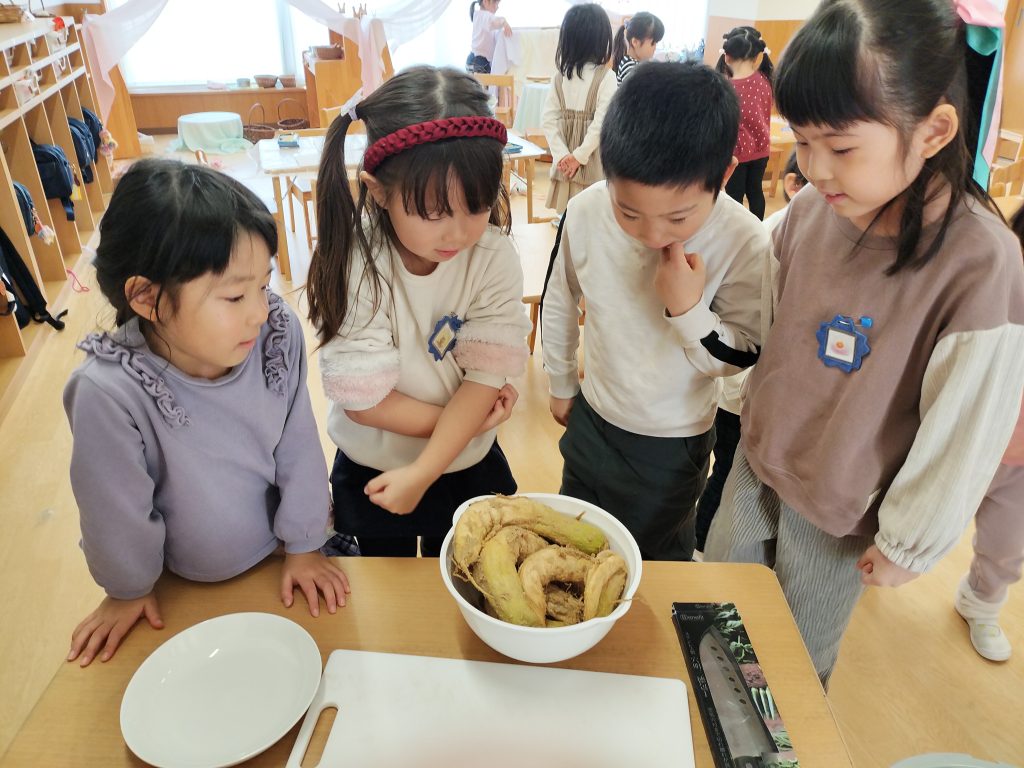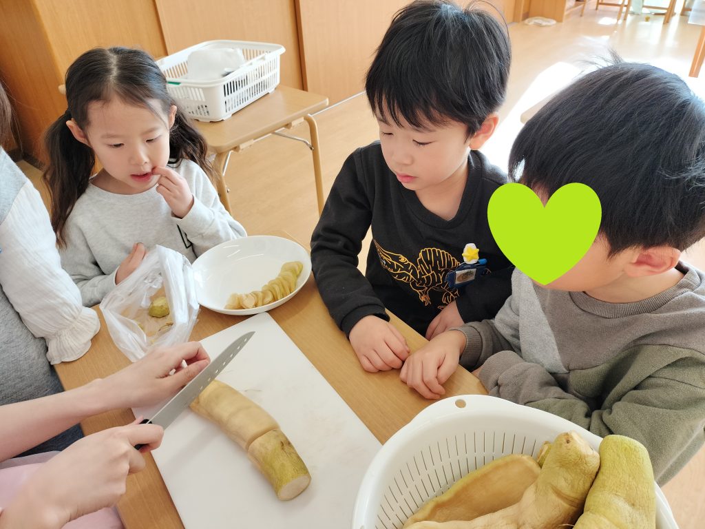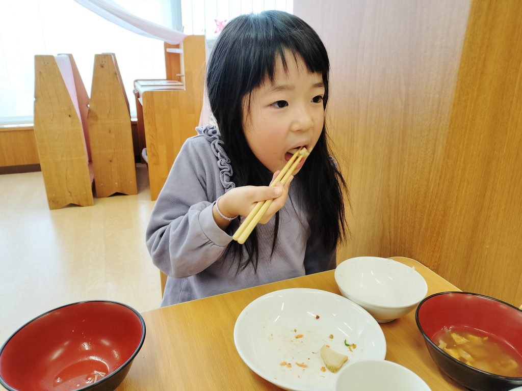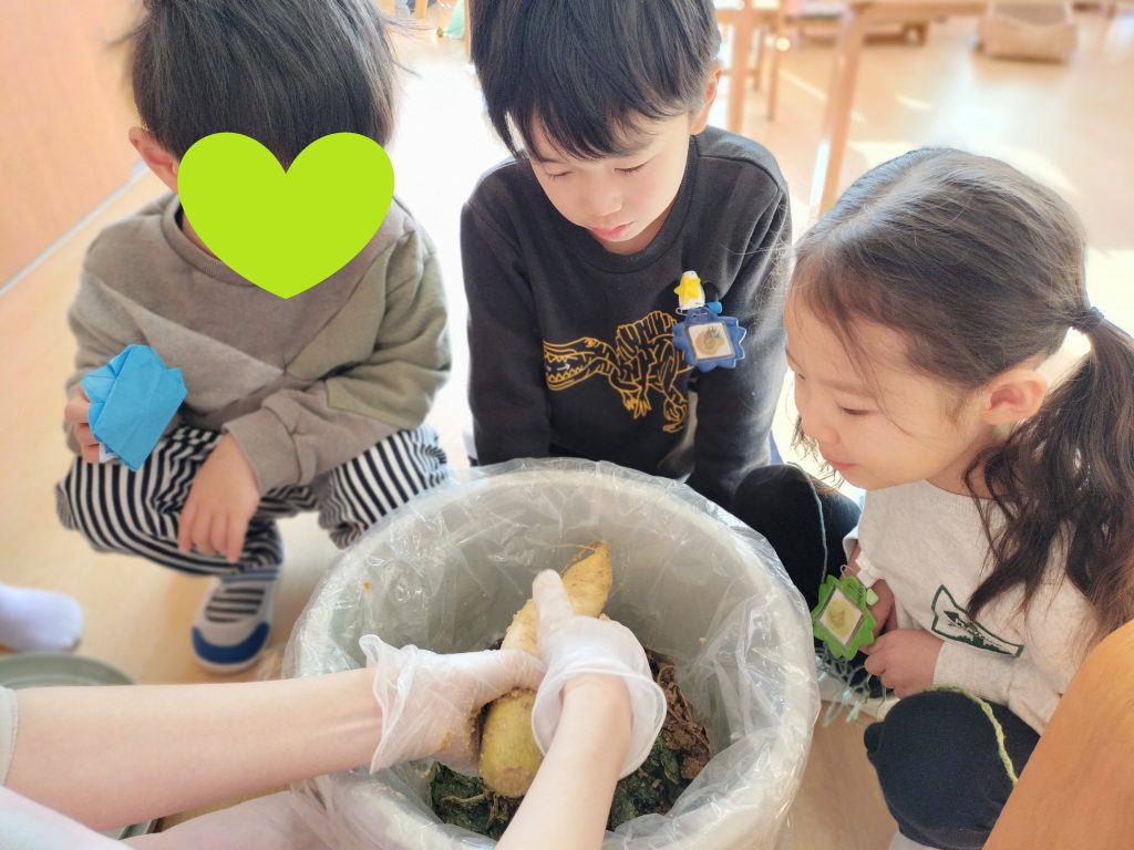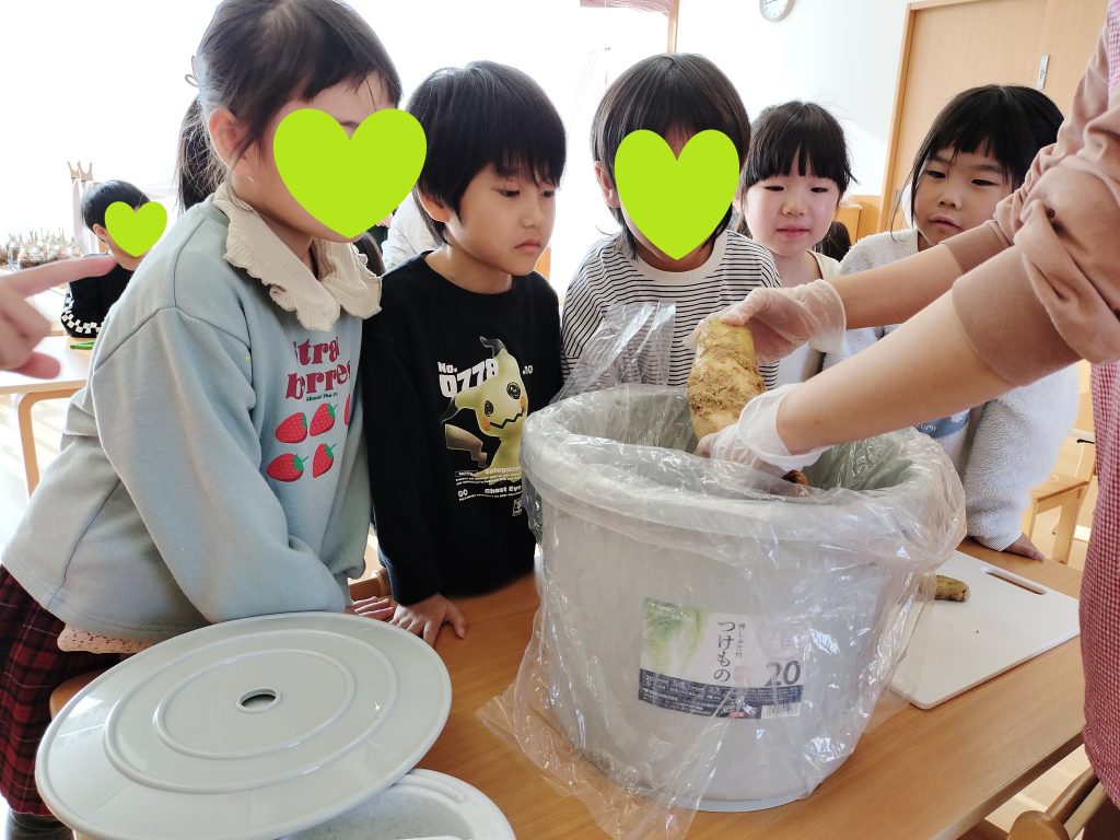 初たくあんの子がたくさんいたそら組さんは、「へんな匂い~!」と、やや抵抗感がある子もいましたが