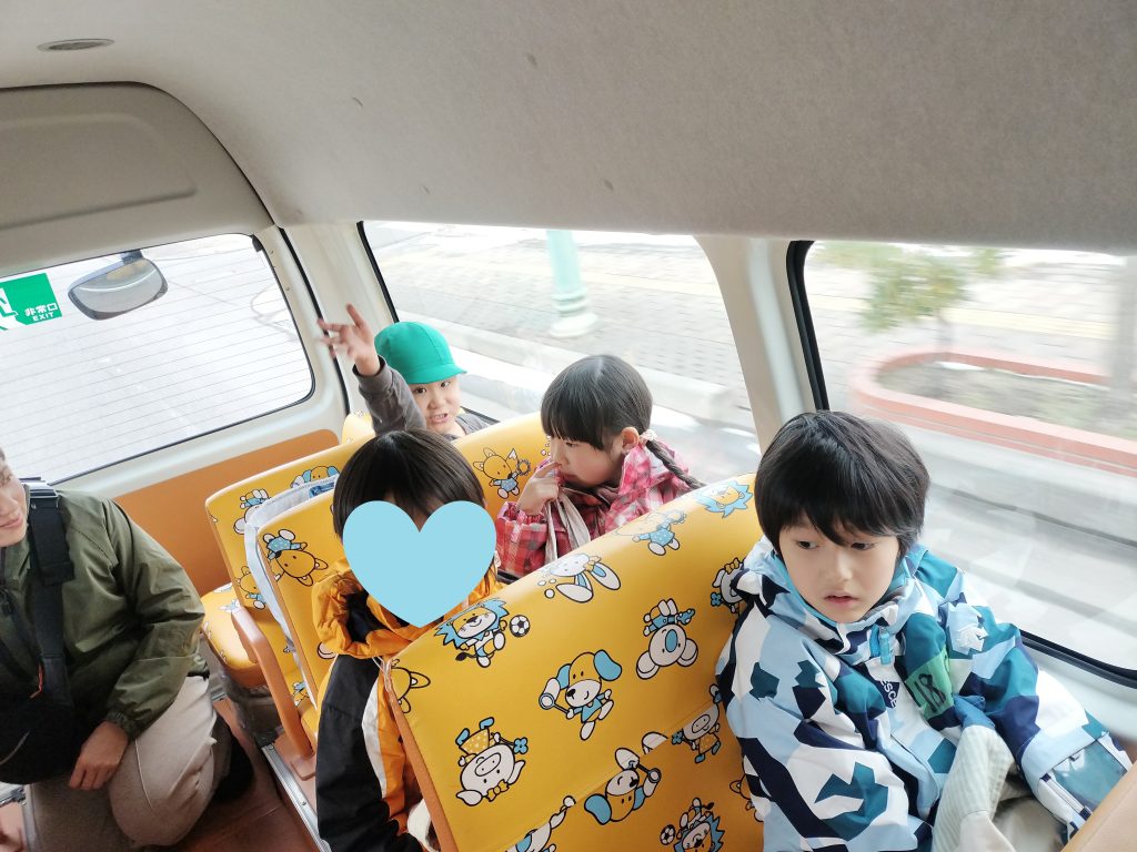 バスの中では「どこにあるのかな?」「はやく行きたい!」と