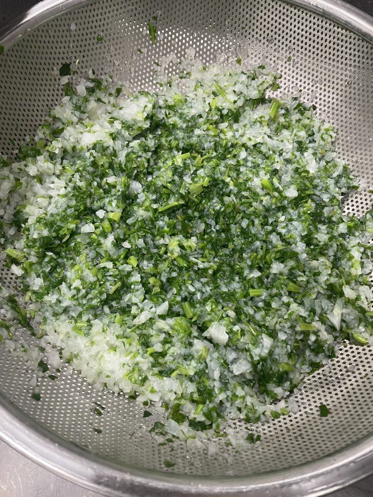 七草をこまかく刻んで茹でます。