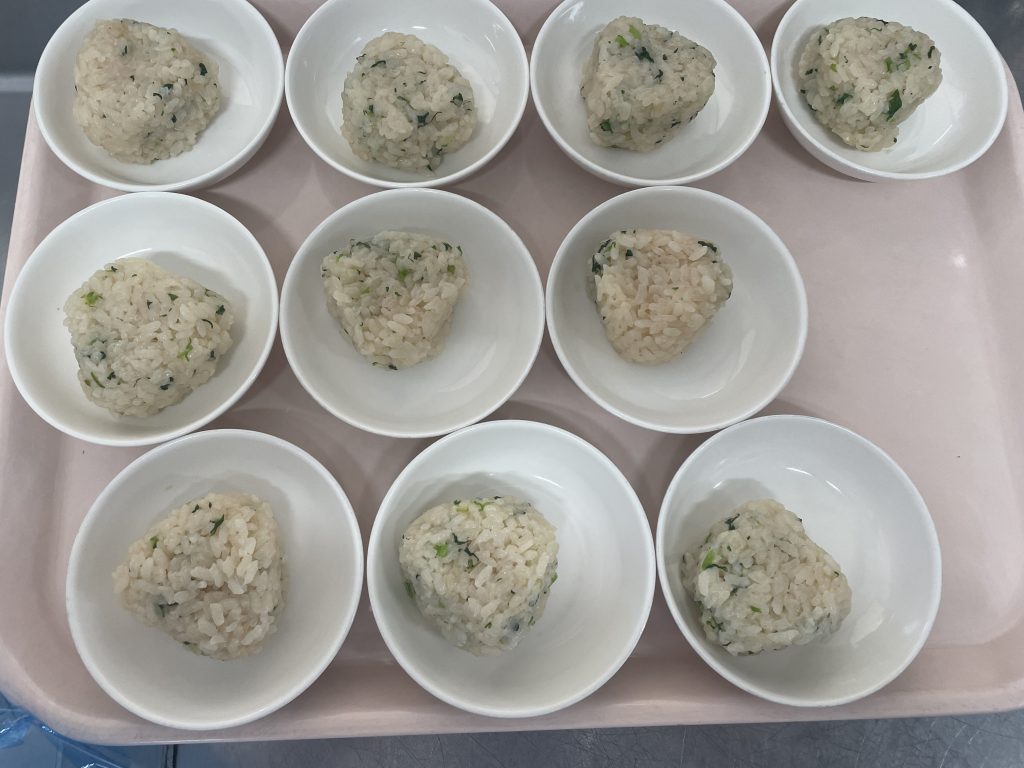 みなとこども園では、七草がゆのかわりにおにぎりとして取り入れました!