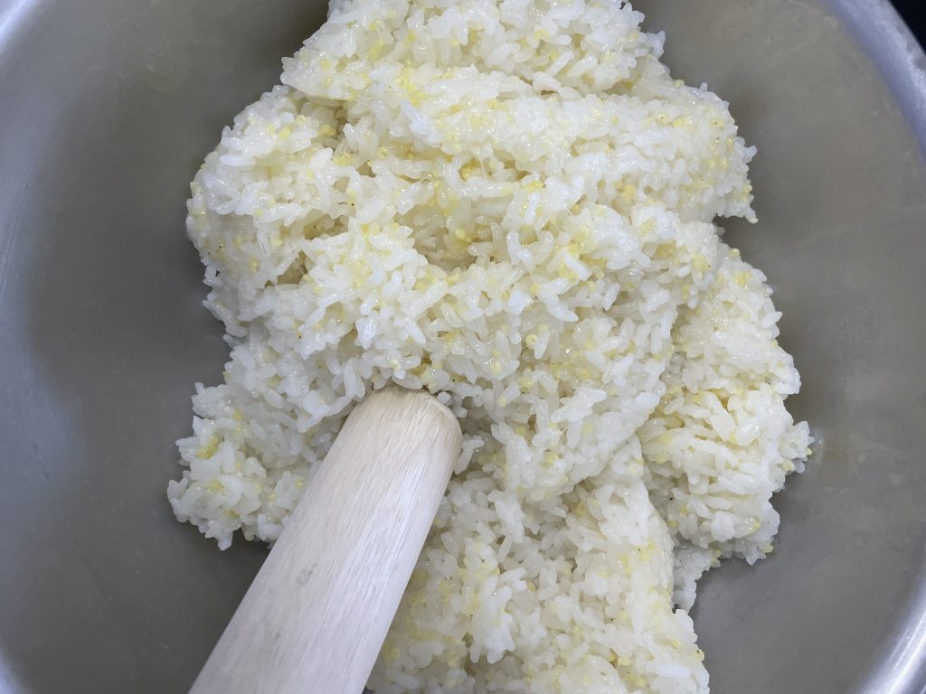 それを砂糖が入ったきな粉に、コロコロ転がしてたっぷりつけていきます。